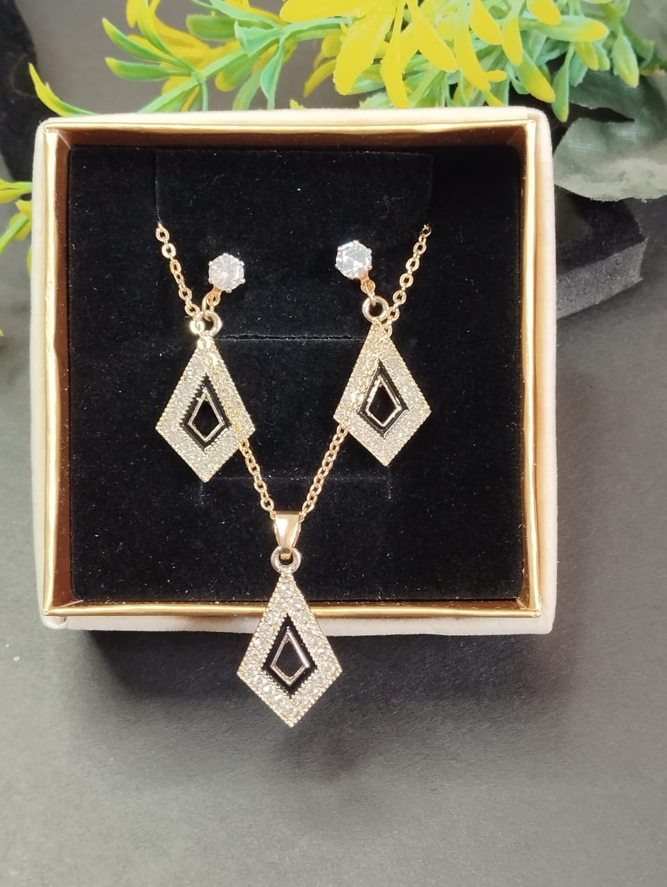 - Store in a dry, secure place to maintain the shine and integrity of the black stones.