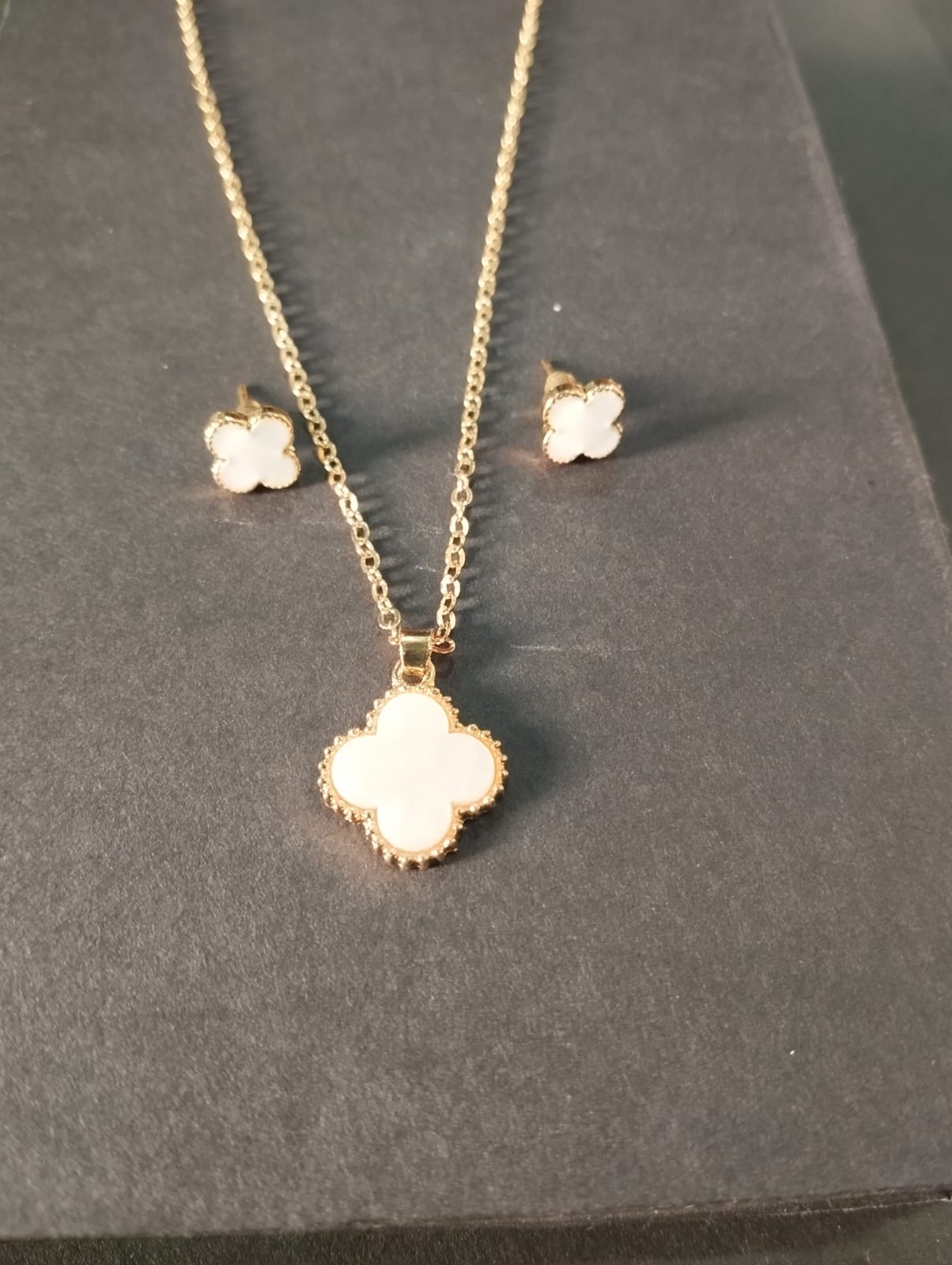 - Product Description: The Flower Pendant Set (White) features a delicate floral design with white stones, adding a touch of elegance and grace to your jewelry collection.